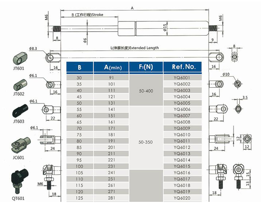 注:由于氣彈簧是非標準的,以上僅為型號的一部分。我們可以根據客戶的要求定制。