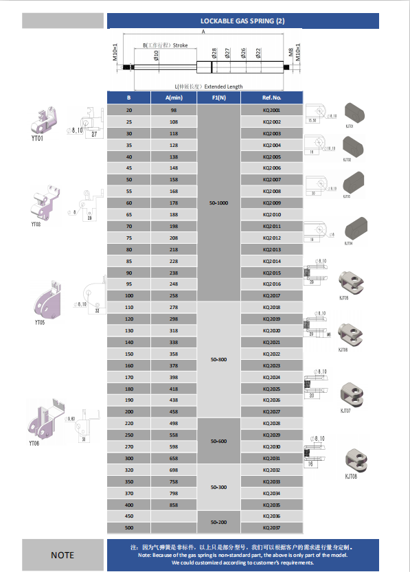 注:由于氣彈簧是非標準的,以上僅為型號的一部分。我們可以根據客戶的要求定制。